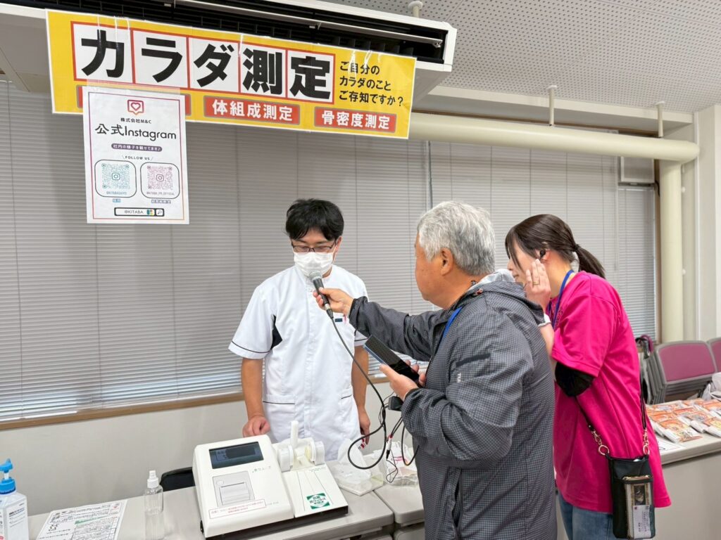 当社からは、薬剤師および管理栄養士が参加し、体組成計や骨密度測定の実施、ならびに管理栄養士による健康相談を行いました。